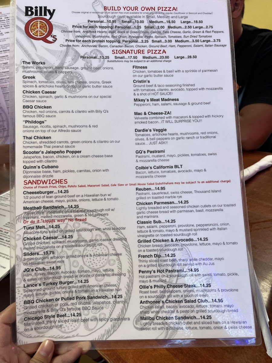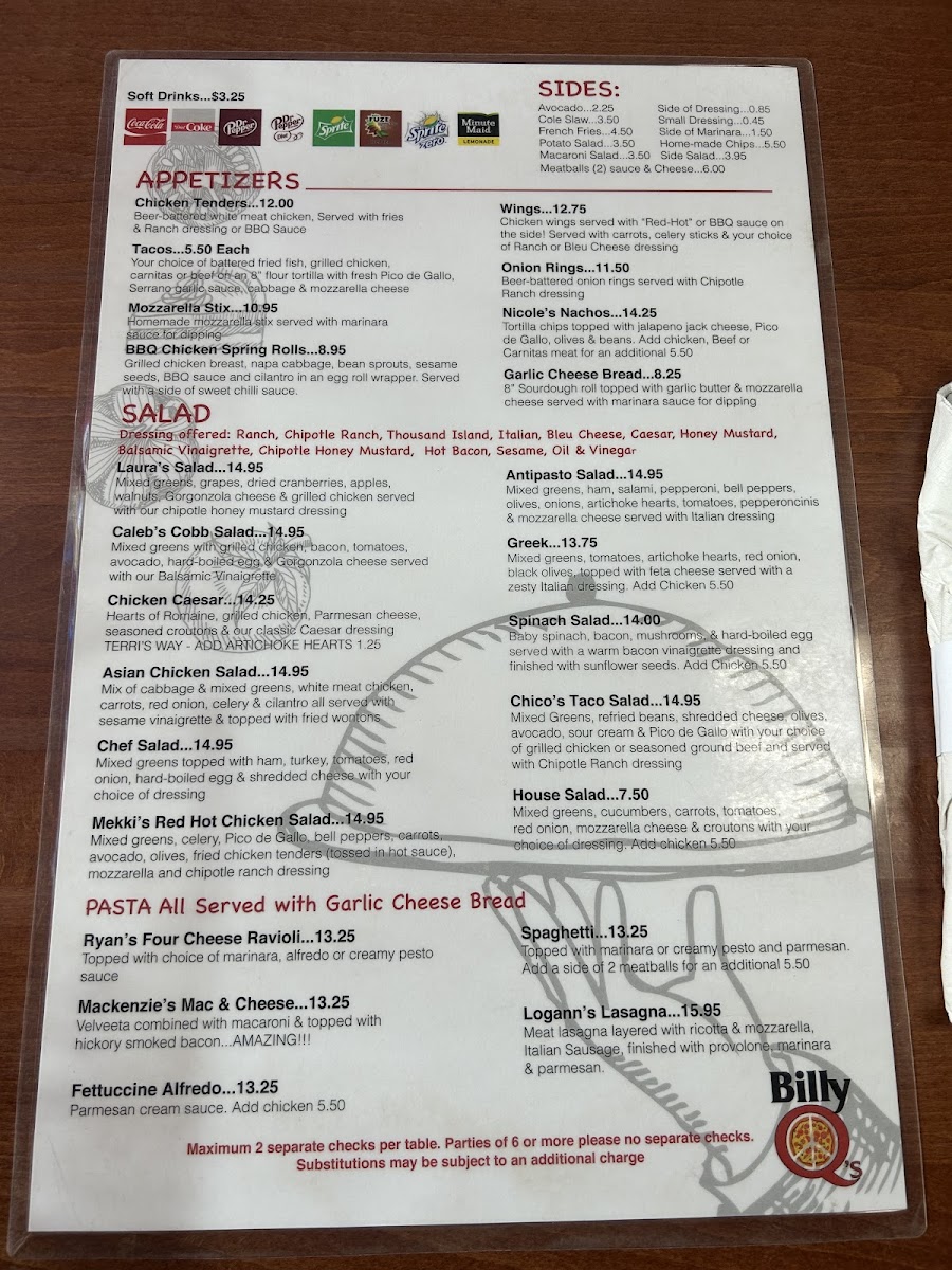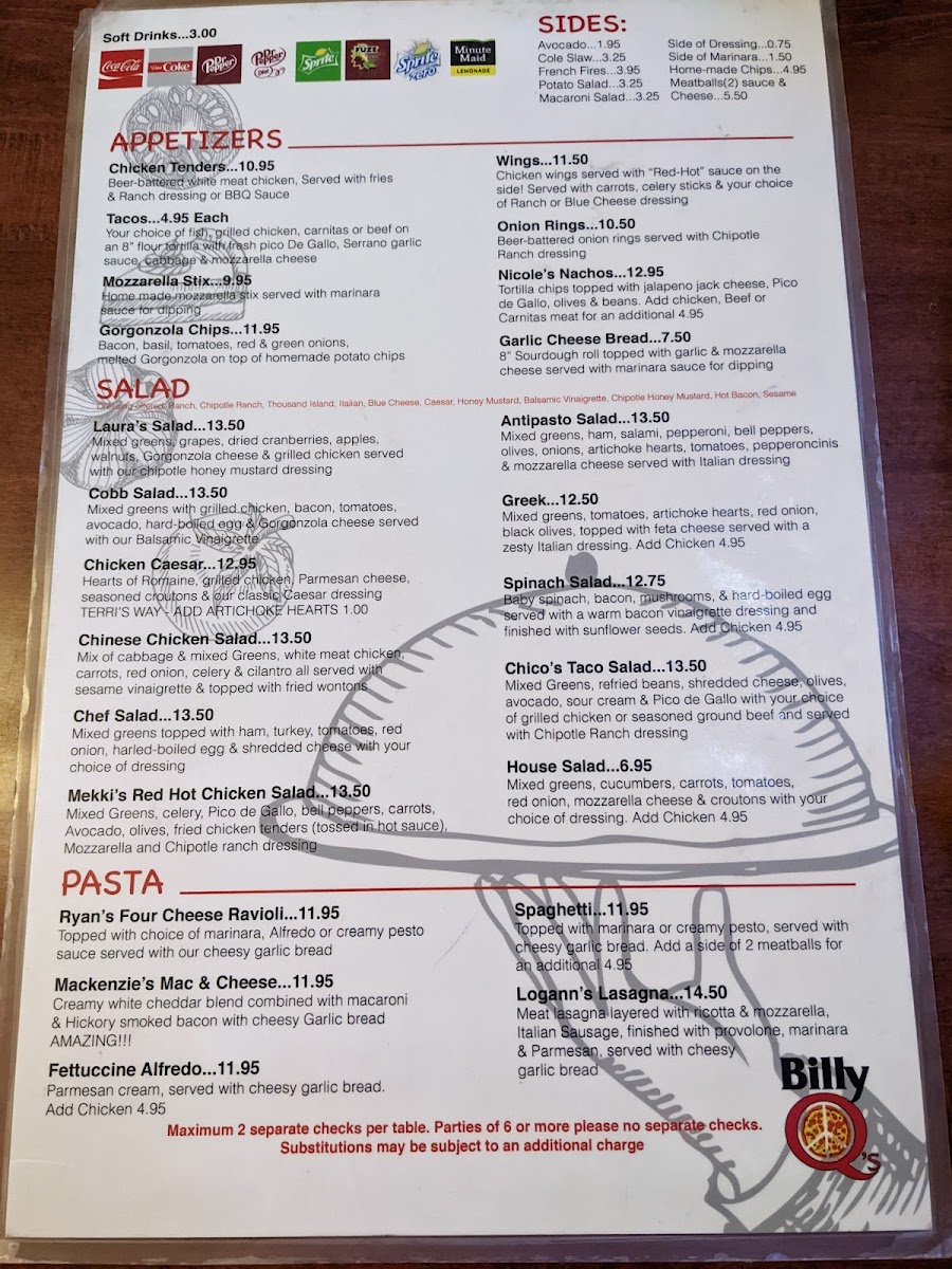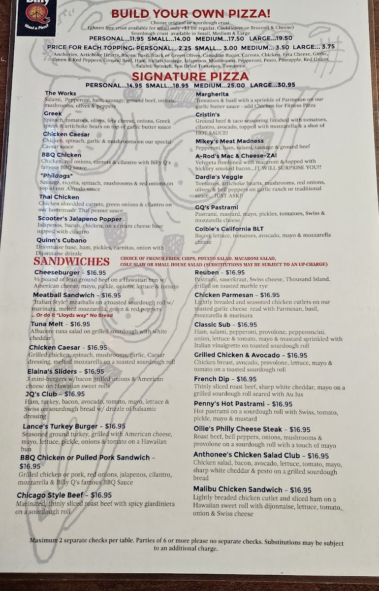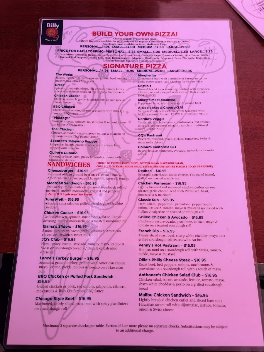 Billy Q's Menu