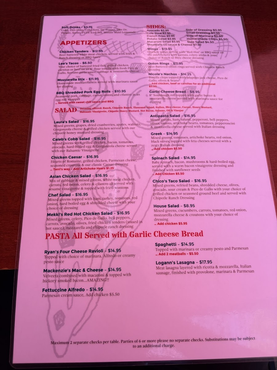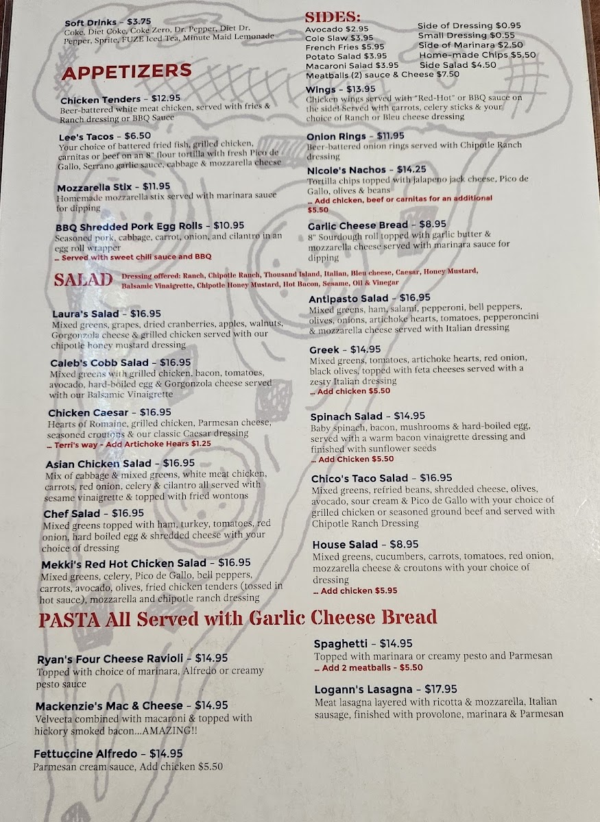 From crispy mozzarella sticks and seasoned chicken wings to customizable personal pizzas and rich pasta dishes like Alfredo or lasagna, the menu encourages flexibility and comfort. The option of a sourdough or cauliflower crust adds an extra layer of choice for those looking for something a bit different. Overall, the offerings invite you to enjoy good food in a relaxed space, with plenty of flavors that feel both familiar and thoughtfully prepared.